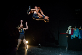 Zwei Zirkusartist*innen entschließen sich ein Kind zu bekommen – und plötzlich steht die Welt Kopf. Trapeztraining mit Schlafentzug, Bühnenproben mit Babybrain, Stückentwicklung beim Windel wechseln. Und darf Mama eigentlich nachts im Club auftreten, während Papa das Kind ins Bett bringt.