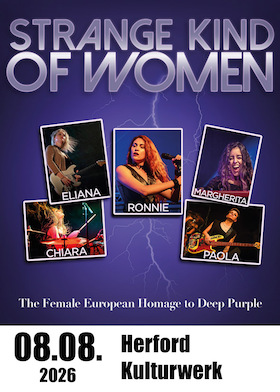Die Besetzung von „Strange Kind Of Women – The Classic Deep Purple Years“ bilden fünf professionelle, international agierende Musikerinnen. Als Frontfrauen agieren, die in Italien Bewunderung und Berühmtheit genießen: Nachdem Alteria im Herbst 2024 die Band aus beruflichen und privaten Gründen in aller Freundschaft verlassen hat, ist nun die in London lebende Leadsängerin RONNIE und Gitarristin Eliana Cargnelutti (die neue Hoffnung des italienischen Blues Rocks) in der ersten Reihe. Begleitet werden sie von Chiara Cotugno am Schlagzeug, Margherita Gruden an den Keyboards und Elettra Pizzale am Bass.