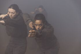 Während regierungskritische Proteste im Frühjahr 2024 durch die Straßen von Tiflis zogen, entstand ebenda die Video-Oper „Death in Peace“. In der Inszenierung von Ayla Pierrot Arendt, eingebettet in die aufwühlende Klangwelt des Komponist*innenduos Nika Pasuri und Ani Zakareishvili, treffen auf vier Leinwänden die Protagonist*innen dreier unterschiedlicher Nationalitäten aufeinander: zwei Georgier*innen, zwei Deutsche und ein Russe im georgischen Exil. Ausgestattet mit ihren jeweiligen Vorstellungen von Frieden und Freiheit, Freund und Feind, die sich nicht lösen lassen von ihren politischen Biografien, begegnen sie sich in der Erzählung der Georgierin Natia und des russischen Deserteurs Andrej. Es dauert nicht lange und Andrej ist tot, versehentlich erschossen, ausgerechnet in der deutschen Botschaft in Tiflis, vom Mann der Botschafterin. Sein Tod wirft viele Fragen auf: nach dem Preis der Freiheit, den Grenzen der Diplomatie, nach den Leerstellen und Mythen kollektiver Identität und nach Loyalitäten – grundiert von einer sich ausbreitenden Angst in einem verunsicherten Europa voller Konflikte.