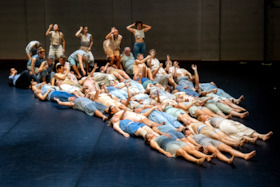Akteur*innen der JugendTanzCompany der fabrik, des Tanzstückes HAMONIM Potsdam 2025, des Programms der Neuen Auftraggeber Eisenhüttenstadt