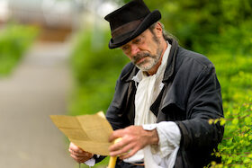 Die Historix-Tour® rund ums Münster. Ein Schauspieler schlüpft in die Rolle des Münsterbaumeister Joseph