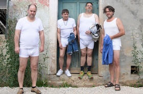 Falschgeld sind jung, aus München und machen dreckigen Indie-Pop-Rock mit deutschen Texten. Stilistisch irgendwo zwischen TonSteineScherben und den frühen Strokes, also allergediegenster Halbstarken-Krawallo! Hoher Spaßfaktor! Keine Rücksicht auf Verluste! Die punkige Attitüde der vier, die seit Kindestagen miteinander Musik machen und entsprechend druckvoll abliefern, trifft kontrastreich auf tiefgründige und smarte Texte von Frontmann Jona Volkmann (den mittlerweile viele auch aus dem Kino kennen, u.a. zuletzt in Sönke Wortmann`s „Der Spitzname“). Nach ihrem aufsehenerregenden Debütalbum „Menschen wie wir“ arbeitet die Band momentan mit Produzenten-Koryphäe Moses Schneider an ihrer zweiten Scheibe „Flügge werden“, die auch genau davon handelt: vom Erwachsenwerden in Zeiten, in denen die Welt scheinbar aus den Fugen gerät. Zeitgeist und Coming of age treffen auf angenehm ehrlichen Indie-Pop-Rock ohne Schnörkel, aber dafür mit umso höherem Spassfaktor.