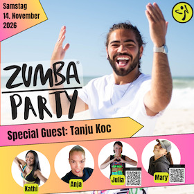 Seid bereit für 3 Stunden voller Energie, Bewegung und Spaß. Von 14:15 bis 20 Uhr heizen euch die ZUMBA Trainer*innen Tanju Koc, Kathi, Anja, Julia und Mary mit rhythmischen Bewegungen zu kraftvoller Musik ein und zeigen, dass Fitness richtig Spaß machen kann.